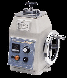 本機(jī)系機(jī)械式鑲嵌機(jī),旋轉(zhuǎn)機(jī)體外手輪,通過(guò)一對(duì)傘齒輪帶動(dòng)機(jī)體內(nèi)絲桿使壓制試樣的下模在剛模套內(nèi)上下移動(dòng),熱因性塑料連同鑲嵌的試樣的試樣在加熱的條件下成形。試樣制備過(guò)程中的成形壓力由固定在集體內(nèi)的彈簧自動(dòng)補(bǔ)償、試樣壓制的壓力可由信號(hào)燈給以指示。
